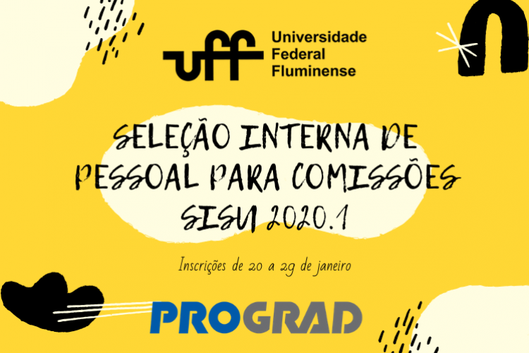 A PROGRAD informa que estão abertas as inscrições para a seleção interna de pessoal para composição e apoio técnico a comissões específicas de verificação de requistos de candidatos classificados no âmbito do processo seletivo de estudantes – UFF/SiSU 2020.1.